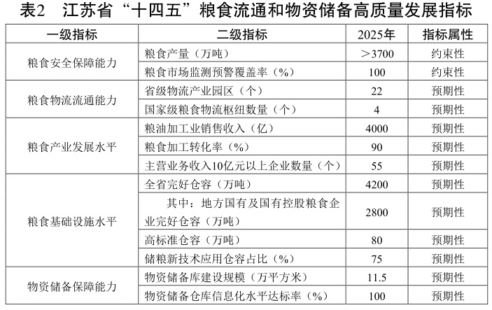 粮食收储调控高层次。政策性收购与市场化收购协调联动的粮食收储体制顺畅运行,产销衔接网络进一步完善,形成全省粮食交易市场体系,构建江苏“123粮食安全供应圈”(主要城市“1小时生活配送圈”“2小时加工供应圈”“3小时粮源保障圈”)。粮食购销活力进一步增强,保障市场供需动态平衡,地方储备规模落实率100%。储备与应急保障能力显著提升,粮食安全水平和调控能力进一步提高。