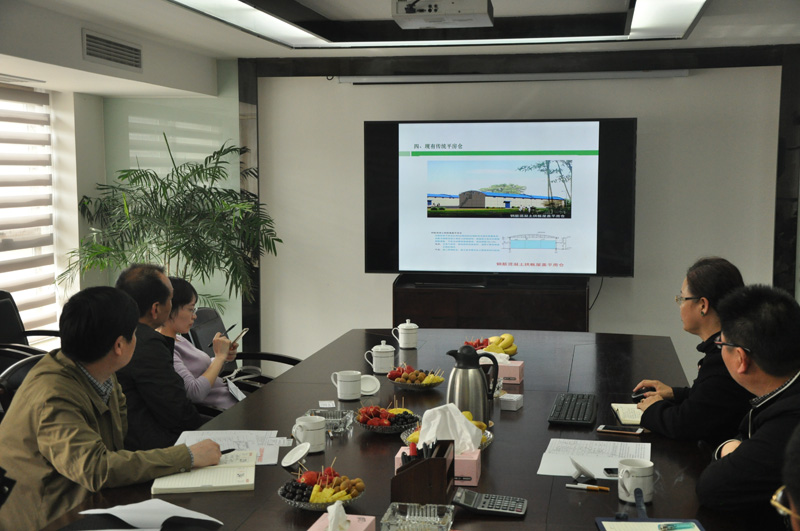 公司领导对“装配式粮食平房仓”主要研究的内容、关键技术以及未来2年的研发计划进行了详细的讲解。